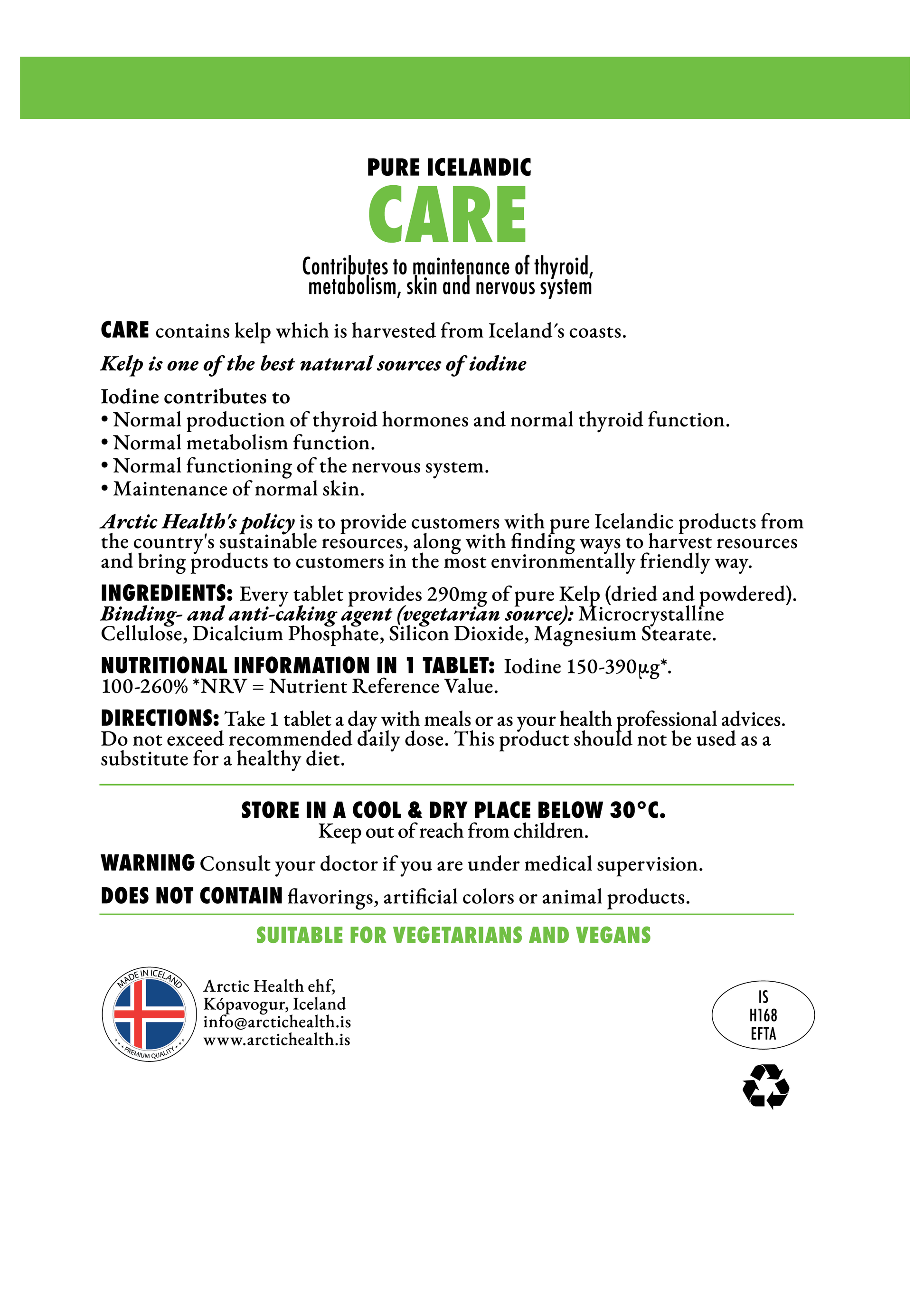 CARE contains kelp which is harvested from Iceland’s coast.